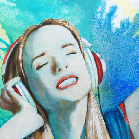 Esta obra pertenece a la serie “Sobre Papel” y pretende ser una alegoría contemporánea a la juventud y la vitalidad femenina, creando imágenes con fondos abstractos que se integran en la propia figura, formando en su conjunto una obra colorista he inspiradora.